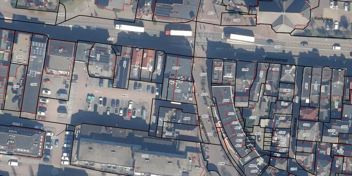 Koninginneweg 1-M is gelegen op kadastraal perceel BKP00A4019. Deze kadastrale aanduiding is uniek en wordt gebruikt door het Kadaster om eigendomsrechten en andere zakelijke rechten vast te leggen. Het perceel maakt onderdeel uit van de kadastrale gemeente Boskoop.