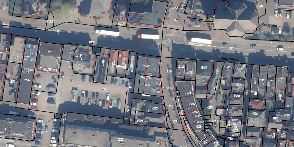 Koninginneweg 1-P is gelegen op kadastraal perceel BKP00A4020. Deze kadastrale aanduiding is uniek en wordt gebruikt door het Kadaster om eigendomsrechten en andere zakelijke rechten vast te leggen. Het perceel maakt onderdeel uit van de kadastrale gemeente Boskoop.