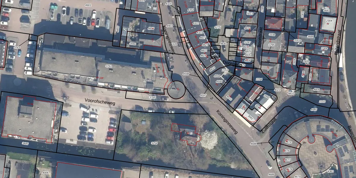 Koninginneweg 13 is gelegen op kadastraal perceel BKP00D3761. Deze kadastrale aanduiding is uniek en wordt gebruikt door het Kadaster om eigendomsrechten en andere zakelijke rechten vast te leggen. Het perceel maakt onderdeel uit van de kadastrale gemeente Boskoop.