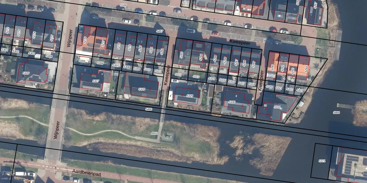 Het perceel waarop Kweepeer 28 staat heeft een oppervlakte van 389 m². Dit is een groot perceel. De perceeloppervlakte wordt geregistreerd door het Kadaster. Gedetailleerde informatie over de maten van dit perceel kunt u vinden in het rapport Kadastrale kaart met maatvoering van Kweepeer 28.