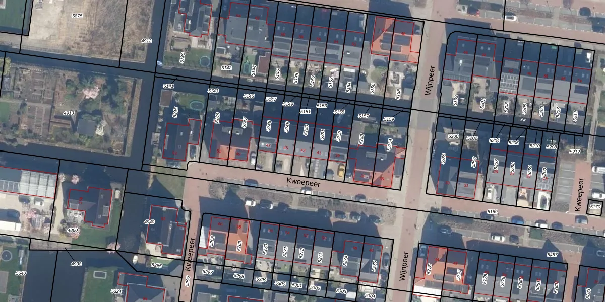 Het perceel waarop Kweepeer 43 staat heeft een oppervlakte van 148 m². Dit is een middelgroot perceel. De perceeloppervlakte wordt geregistreerd door het Kadaster. Gedetailleerde informatie over de maten van dit perceel kunt u vinden in het rapport Kadastrale kaart met maatvoering van Kweepeer 43.