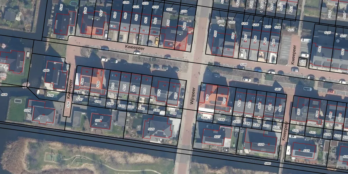 Kweepeer 46 is gelegen op kadastraal perceel BKP00D5275. Deze kadastrale aanduiding is uniek en wordt gebruikt door het Kadaster om eigendomsrechten en andere zakelijke rechten vast te leggen. Het perceel maakt onderdeel uit van de kadastrale gemeente Boskoop.
