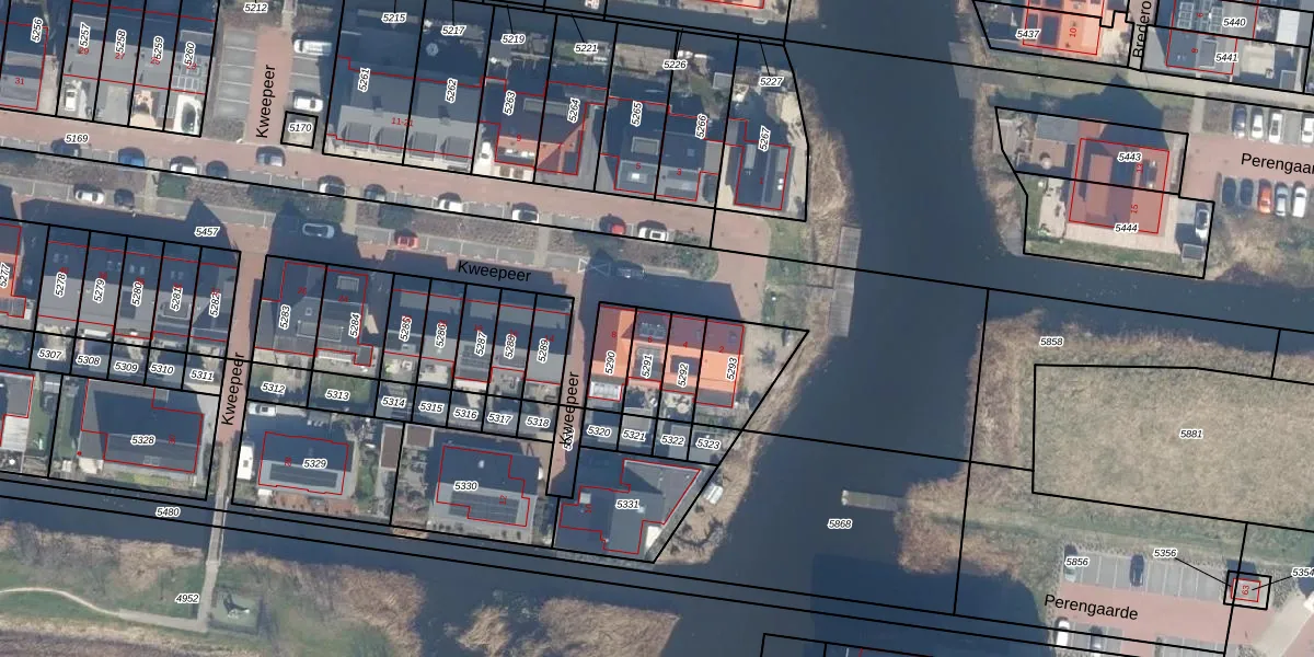 Kweepeer 6 is gelegen op kadastraal perceel BKP00D5291. Deze kadastrale aanduiding is uniek en wordt gebruikt door het Kadaster om eigendomsrechten en andere zakelijke rechten vast te leggen. Het perceel maakt onderdeel uit van de kadastrale gemeente Boskoop.