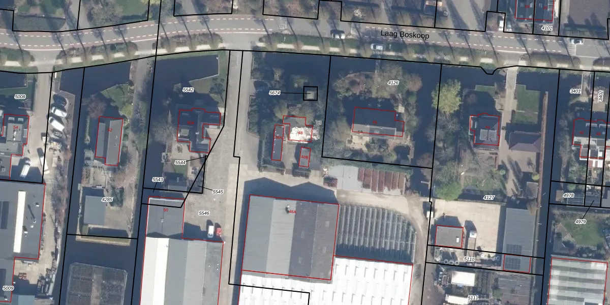 Het perceel waarop Laag Boskoop 48-B staat heeft een oppervlakte van 1,6 ha. Dit is een zeer groot perceel. De perceeloppervlakte wordt geregistreerd door het Kadaster. Gedetailleerde informatie over de maten van dit perceel kunt u vinden in het rapport Kadastrale kaart met maatvoering van Laag Boskoop 48-B.