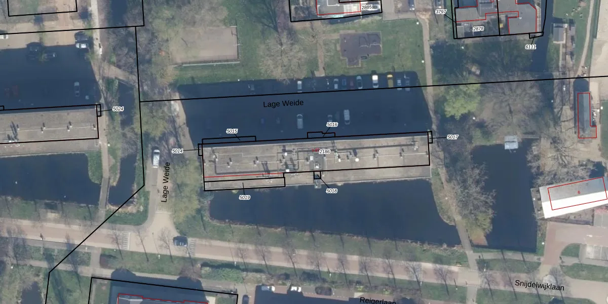 Het perceel waarop Lage Weide 15 staat heeft een oppervlakte van 859 m². Dit is een groot perceel. De perceeloppervlakte wordt geregistreerd door het Kadaster. Gedetailleerde informatie over de maten van dit perceel kunt u vinden in het rapport Kadastrale kaart met maatvoering van Lage Weide 15.