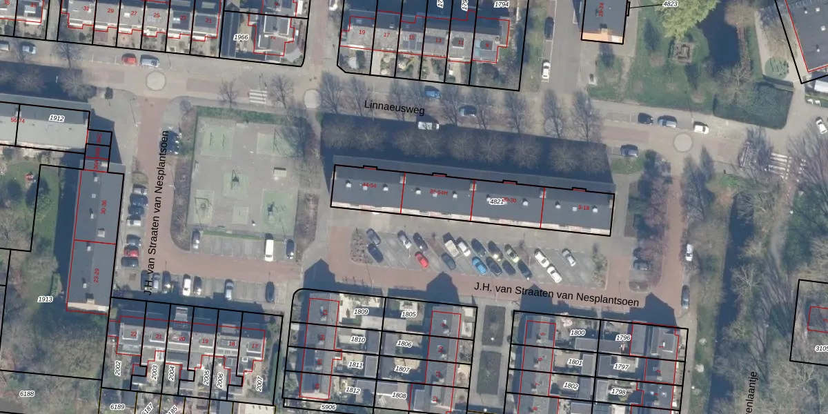 Het perceel waarop Linnaeusweg 42 staat heeft een oppervlakte van 701 m². Dit is een groot perceel. De perceeloppervlakte wordt geregistreerd door het Kadaster. Gedetailleerde informatie over de maten van dit perceel kunt u vinden in het rapport Kadastrale kaart met maatvoering van Linnaeusweg 42.