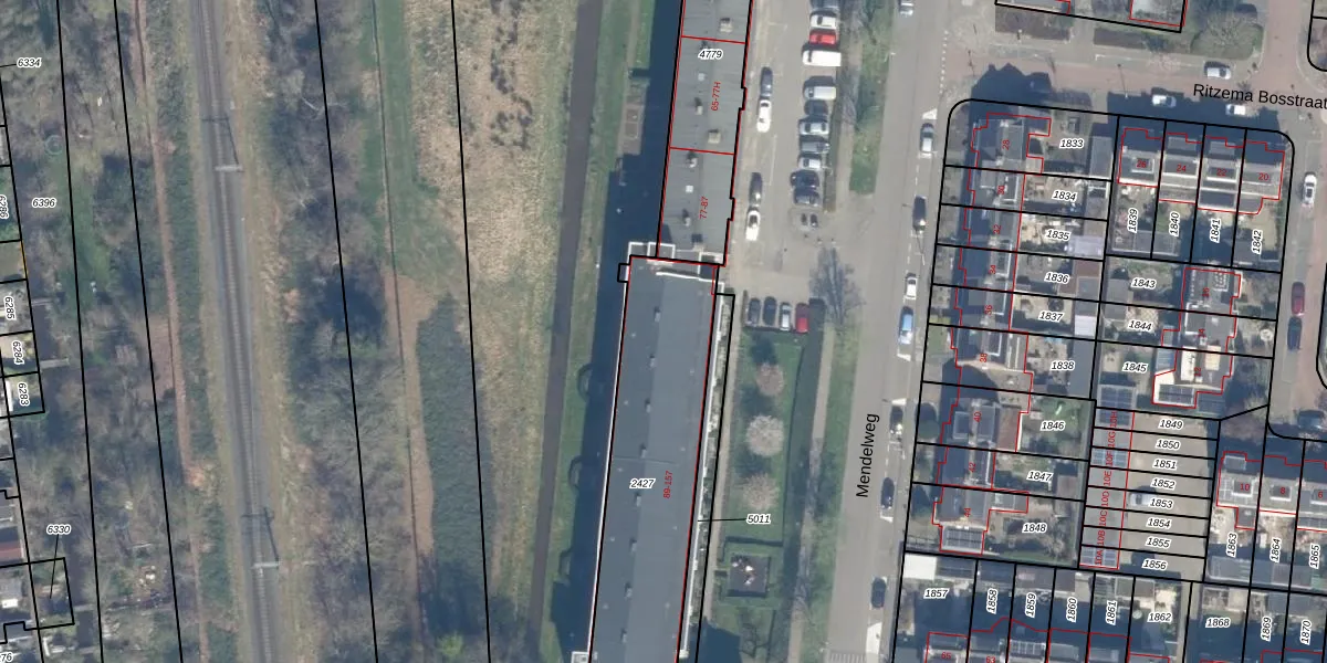 Mendelweg 107 is gelegen op kadastraal perceel BKP00D2427. Deze kadastrale aanduiding is uniek en wordt gebruikt door het Kadaster om eigendomsrechten en andere zakelijke rechten vast te leggen. Het perceel maakt onderdeel uit van de kadastrale gemeente Boskoop.