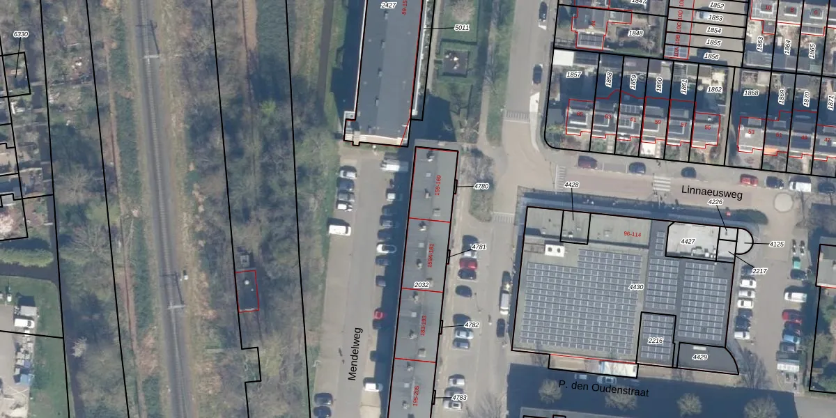 Het perceel waarop Mendelweg 169 staat heeft een oppervlakte van 692 m². Dit is een groot perceel. De perceeloppervlakte wordt geregistreerd door het Kadaster. Gedetailleerde informatie over de maten van dit perceel kunt u vinden in het rapport Kadastrale kaart met maatvoering van Mendelweg 169.
