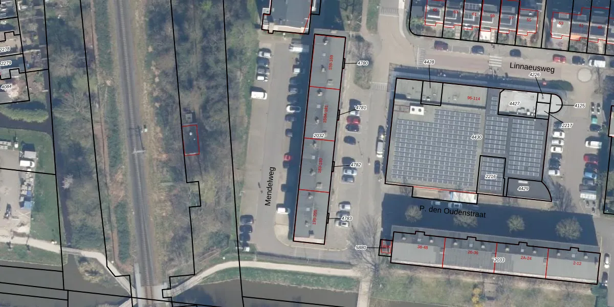 Mendelweg 191 is gelegen op kadastraal perceel BKP00D2032. Deze kadastrale aanduiding is uniek en wordt gebruikt door het Kadaster om eigendomsrechten en andere zakelijke rechten vast te leggen. Het perceel maakt onderdeel uit van de kadastrale gemeente Boskoop.
