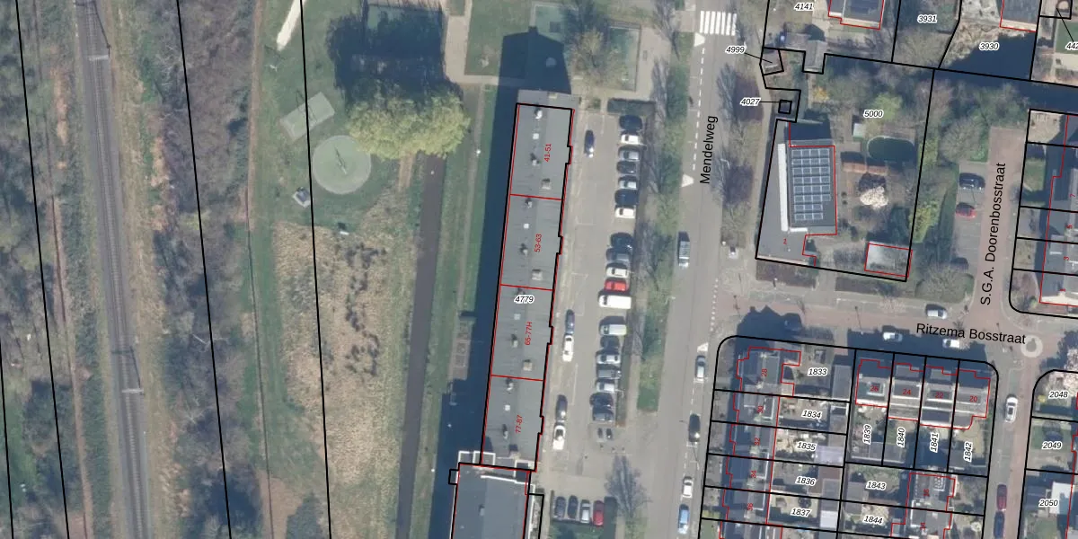 Mendelweg 55 is gelegen op kadastraal perceel BKP00D4779. Deze kadastrale aanduiding is uniek en wordt gebruikt door het Kadaster om eigendomsrechten en andere zakelijke rechten vast te leggen. Het perceel maakt onderdeel uit van de kadastrale gemeente Boskoop.