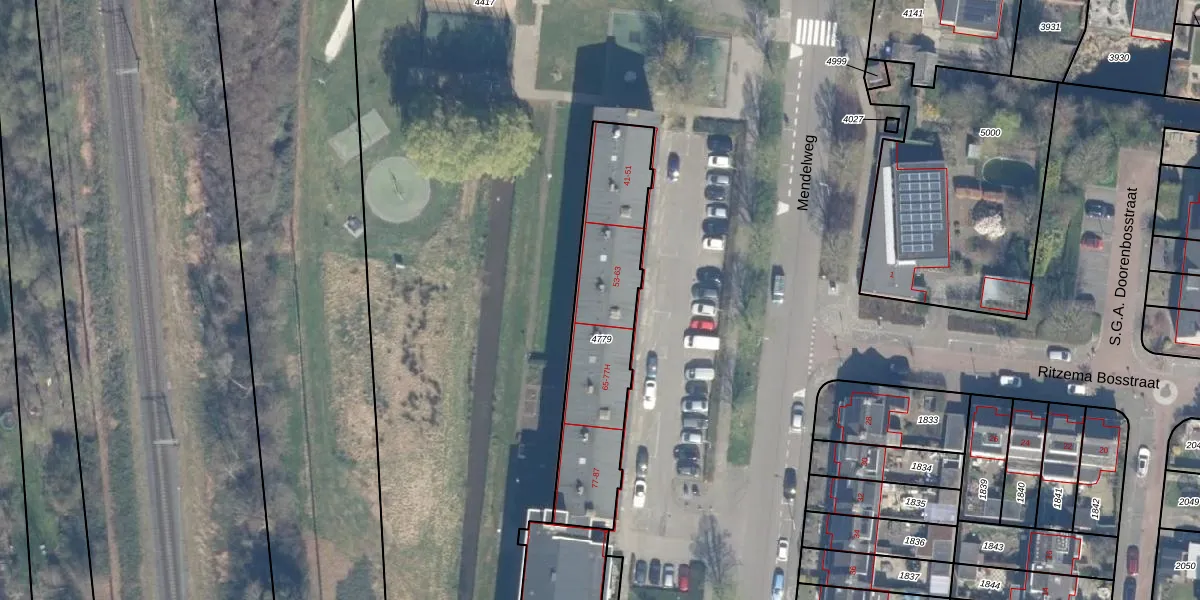 Mendelweg 59 is gelegen op kadastraal perceel BKP00D4779. Deze kadastrale aanduiding is uniek en wordt gebruikt door het Kadaster om eigendomsrechten en andere zakelijke rechten vast te leggen. Het perceel maakt onderdeel uit van de kadastrale gemeente Boskoop.