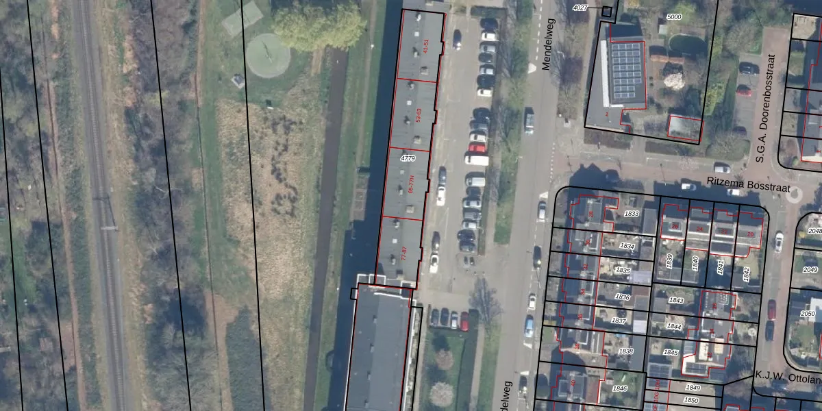 Mendelweg 67 is gelegen op kadastraal perceel BKP00D4779. Deze kadastrale aanduiding is uniek en wordt gebruikt door het Kadaster om eigendomsrechten en andere zakelijke rechten vast te leggen. Het perceel maakt onderdeel uit van de kadastrale gemeente Boskoop.