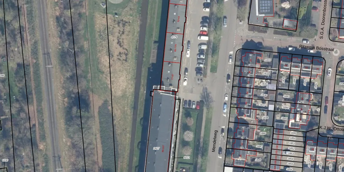 Mendelweg 79 is gelegen op kadastraal perceel BKP00D4779. Deze kadastrale aanduiding is uniek en wordt gebruikt door het Kadaster om eigendomsrechten en andere zakelijke rechten vast te leggen. Het perceel maakt onderdeel uit van de kadastrale gemeente Boskoop.