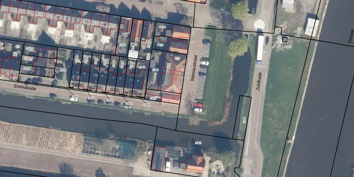 Het perceel waarop het adres ligt is BKP00-D-1383. De afkorting 'BKP00' staat voor kadastrale gemeente Boskoop. Het perceel is kleiner dan gemiddeld in Boskoop. Het perceel is 449 m² groot, terwijl het gemiddelde ligt op 1883,96 m². Het kleinste perceel in de kadastrale gemeente is 0 m² groot. De grootste perceeloppervlakte is 20,7 ha. Op het perceel zijn 9 adressen aanwezig. In de Basisregistratie Kadaster (BRK) werden de grenzen van het perceel geregistreerd op 20-02-2007.