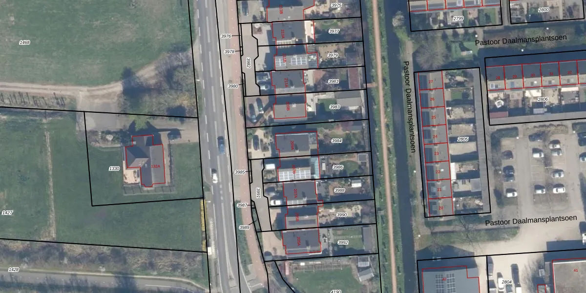 Het adres ligt op het perceel BKP00-D-3984, dat zich in de kadastrale gemeente Boskoop bevindt. Het perceel is kleiner dan gemiddeld in Boskoop. Het perceel is 457 m² groot, terwijl het gemiddelde ligt op 1881,86 m². Het kleinste perceel in de kadastrale gemeente is 0 m² groot. De grootste perceeloppervlakte is 20,7 ha. Op het perceel bevinden zich geen andere adressen. De laatste wijziging in het de Basisregistratie Kadaster (BRK) was op 05-07-2001.