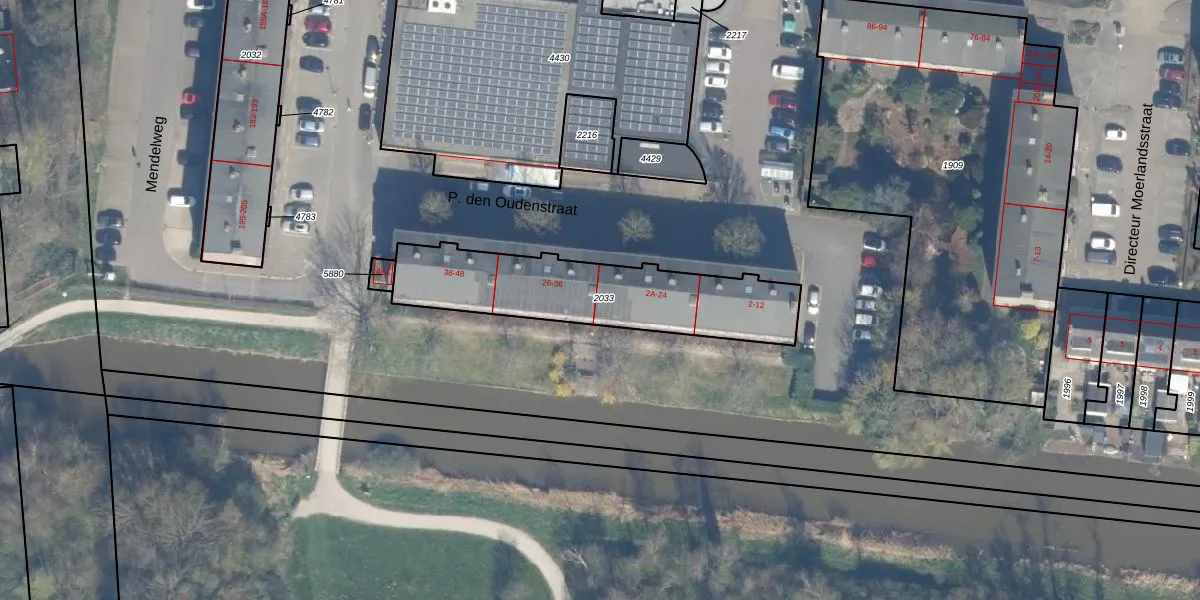 P. den Oudenstraat 2-I is gelegen op kadastraal perceel BKP00D2033. Deze kadastrale aanduiding is uniek en wordt gebruikt door het Kadaster om eigendomsrechten en andere zakelijke rechten vast te leggen. Het perceel maakt onderdeel uit van de kadastrale gemeente Boskoop.