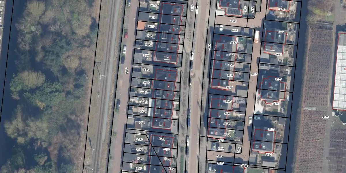 Het adres ligt op het perceel BKP00-A-5405, dat zich in de kadastrale gemeente Boskoop bevindt. Het perceel is kleiner dan gemiddeld in Boskoop. Het perceel is 154 m² groot, terwijl het gemiddelde ligt op 1874,79 m². Het kleinste perceel in de kadastrale gemeente is 0 m² groot. De grootste perceeloppervlakte is 20,7 ha. Er zijn geen andere adressen aanwezig op het perceel. De laatste wijziging in het de Basisregistratie Kadaster (BRK) was op 19-11-2013.