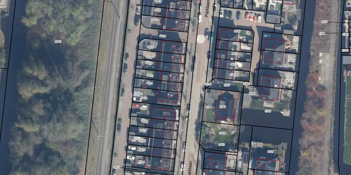 Parklaan 186 is gelegen op kadastraal perceel BKP00A5421. Deze kadastrale aanduiding is uniek en wordt gebruikt door het Kadaster om eigendomsrechten en andere zakelijke rechten vast te leggen. Het perceel maakt onderdeel uit van de kadastrale gemeente Boskoop.