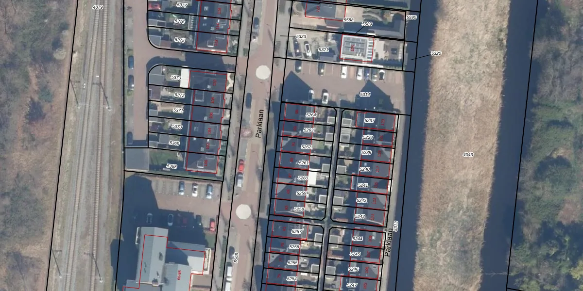Het perceel waarop Parklaan 91 staat heeft een oppervlakte van 104 m². Dit is een middelgroot perceel. De perceeloppervlakte wordt geregistreerd door het Kadaster. Gedetailleerde informatie over de maten van dit perceel kunt u vinden in het rapport Kadastrale kaart met maatvoering van Parklaan 91.