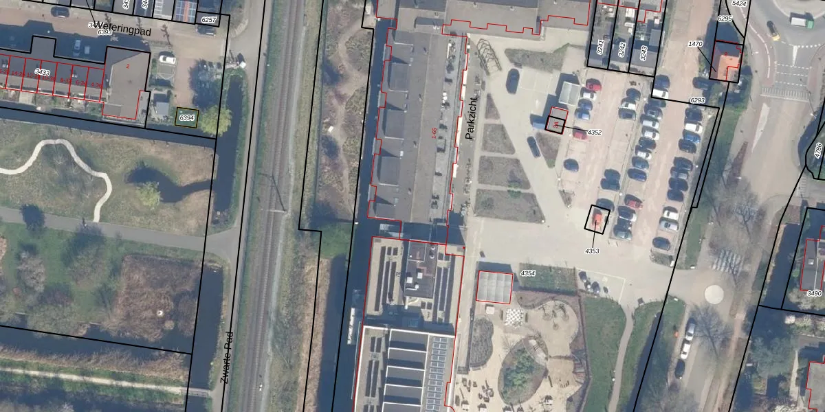 Het perceel waarop Parkzicht 23 staat heeft een oppervlakte van 1,2 ha. Dit is een zeer groot perceel. De perceeloppervlakte wordt geregistreerd door het Kadaster. Gedetailleerde informatie over de maten van dit perceel kunt u vinden in het rapport Kadastrale kaart met maatvoering van Parkzicht 23.