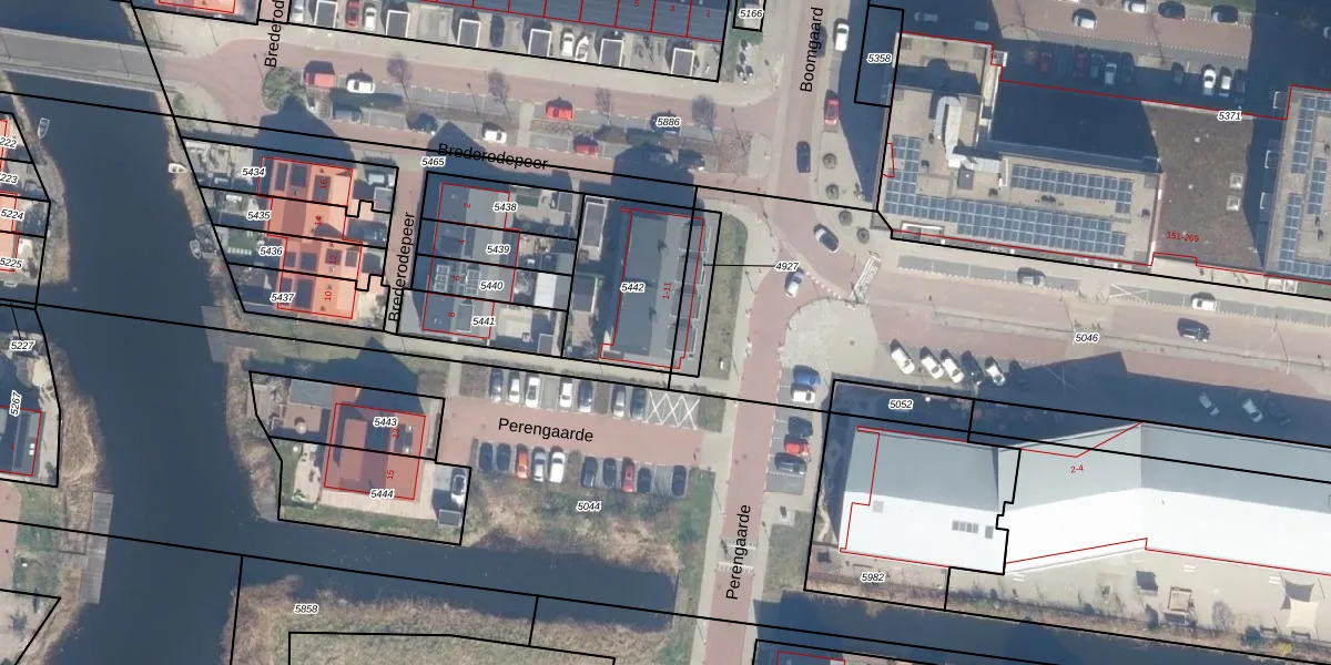 Perengaarde 5 is gelegen op kadastraal perceel BKP00D5442. Deze kadastrale aanduiding is uniek en wordt gebruikt door het Kadaster om eigendomsrechten en andere zakelijke rechten vast te leggen. Het perceel maakt onderdeel uit van de kadastrale gemeente Boskoop.