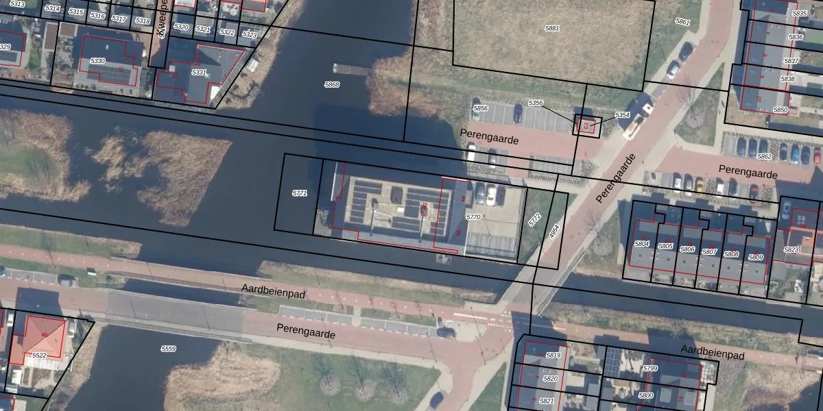 Het perceel waarop Perengaarde 79 staat heeft een oppervlakte van 940 m². Dit is een groot perceel. De perceeloppervlakte wordt geregistreerd door het Kadaster. Gedetailleerde informatie over de maten van dit perceel kunt u vinden in het rapport Kadastrale kaart met maatvoering van Perengaarde 79.