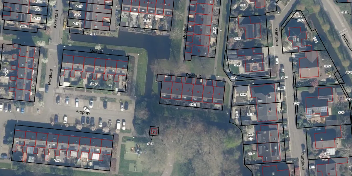 Het perceel waarop Poelruit 14 staat heeft een oppervlakte van 606 m². Dit is een groot perceel. De perceeloppervlakte wordt geregistreerd door het Kadaster. Gedetailleerde informatie over de maten van dit perceel kunt u vinden in het rapport Kadastrale kaart met maatvoering van Poelruit 14.