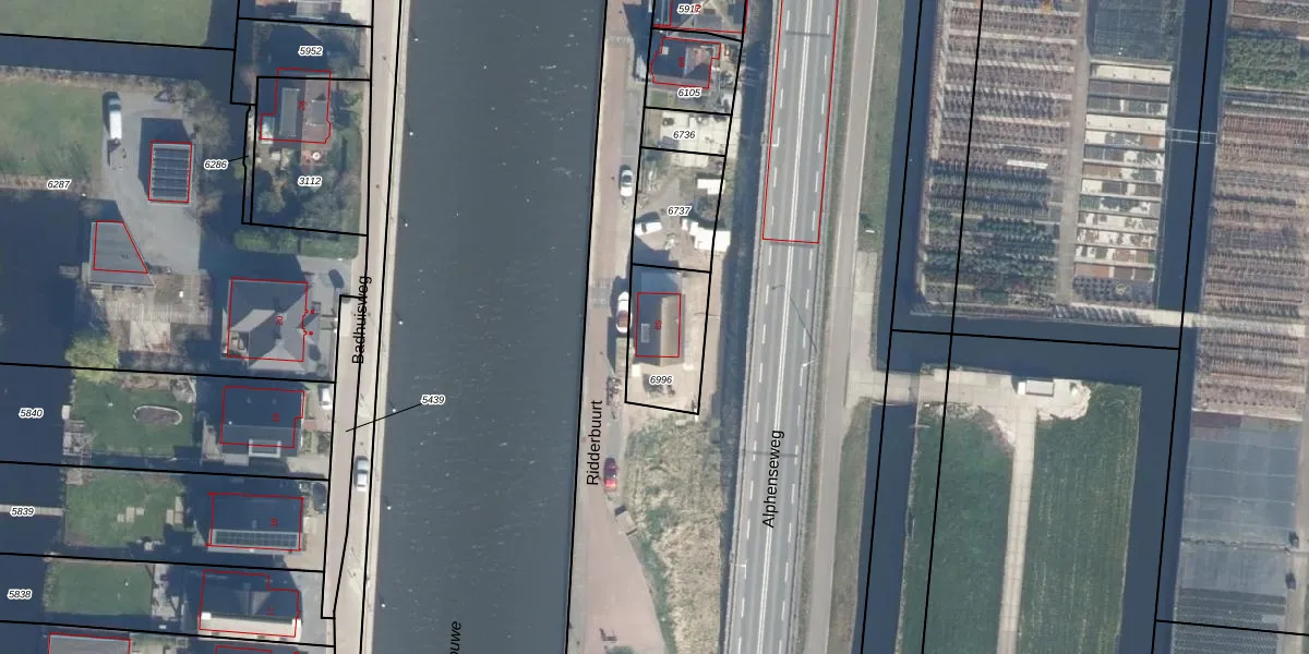 Ridderbuurt 65 is gelegen op kadastraal perceel BKP00B6996. Deze kadastrale aanduiding is uniek en wordt gebruikt door het Kadaster om eigendomsrechten en andere zakelijke rechten vast te leggen. Het perceel maakt onderdeel uit van de kadastrale gemeente Boskoop.