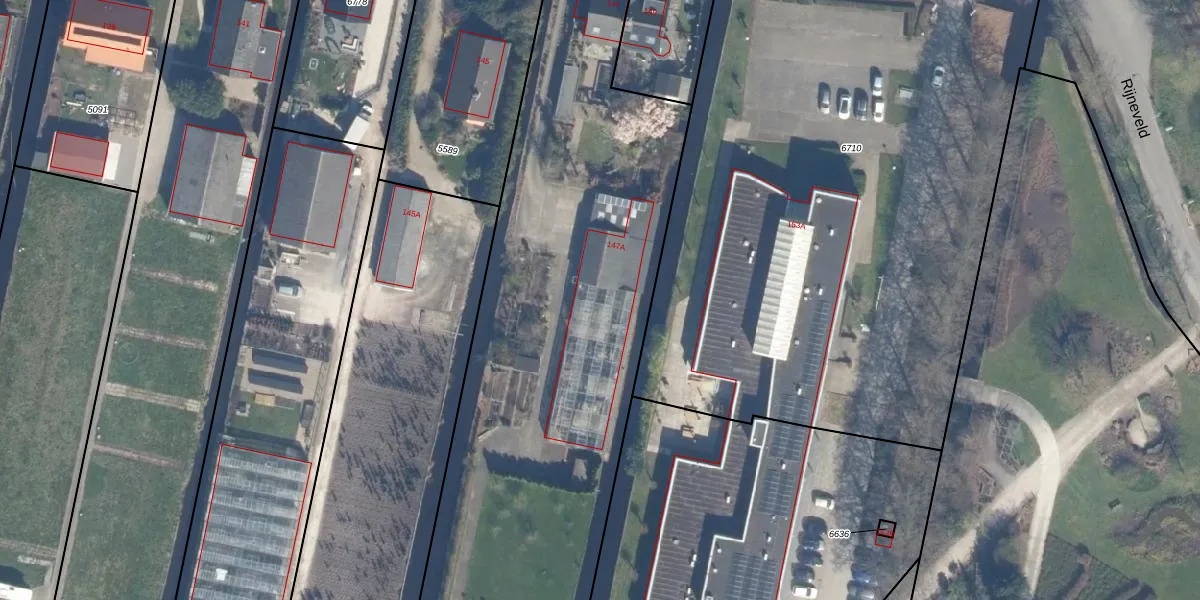 Het perceel waarop Rijneveld 147-A staat heeft een oppervlakte van 7400 m². Dit is een zeer groot perceel. De perceeloppervlakte wordt geregistreerd door het Kadaster. Gedetailleerde informatie over de maten van dit perceel kunt u vinden in het rapport Kadastrale kaart met maatvoering van Rijneveld 147-A.