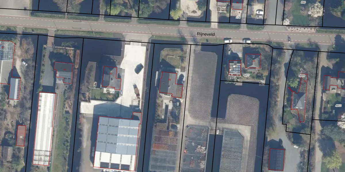 Het perceel waarop Rijneveld 29 staat heeft een oppervlakte van 6805 m². Dit is een zeer groot perceel. De perceeloppervlakte wordt geregistreerd door het Kadaster. Gedetailleerde informatie over de maten van dit perceel kunt u vinden in het rapport Kadastrale kaart met maatvoering van Rijneveld 29.