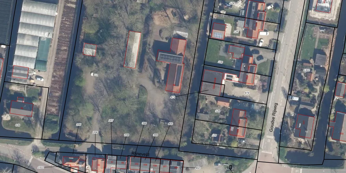 Het adres ligt op het perceel BKP00-K-130, dat zich in de kadastrale gemeente Boskoop bevindt. De oppervlakte van het perceel is 2,4 ha. Dat is groter dan gemiddeld in Boskoop, waar de gemiddelde perceeloppervlakte op 1874,79 m² ligt. Het grootste perceel in de kadastrale gemeente is 20,7 ha. Het kleinste perceel heeft een oppervlakte van 0 m². Op het perceel zijn 2 adressen aanwezig. De laatste wijziging in het de Basisregistratie Kadaster (BRK) was op 13-11-2001.