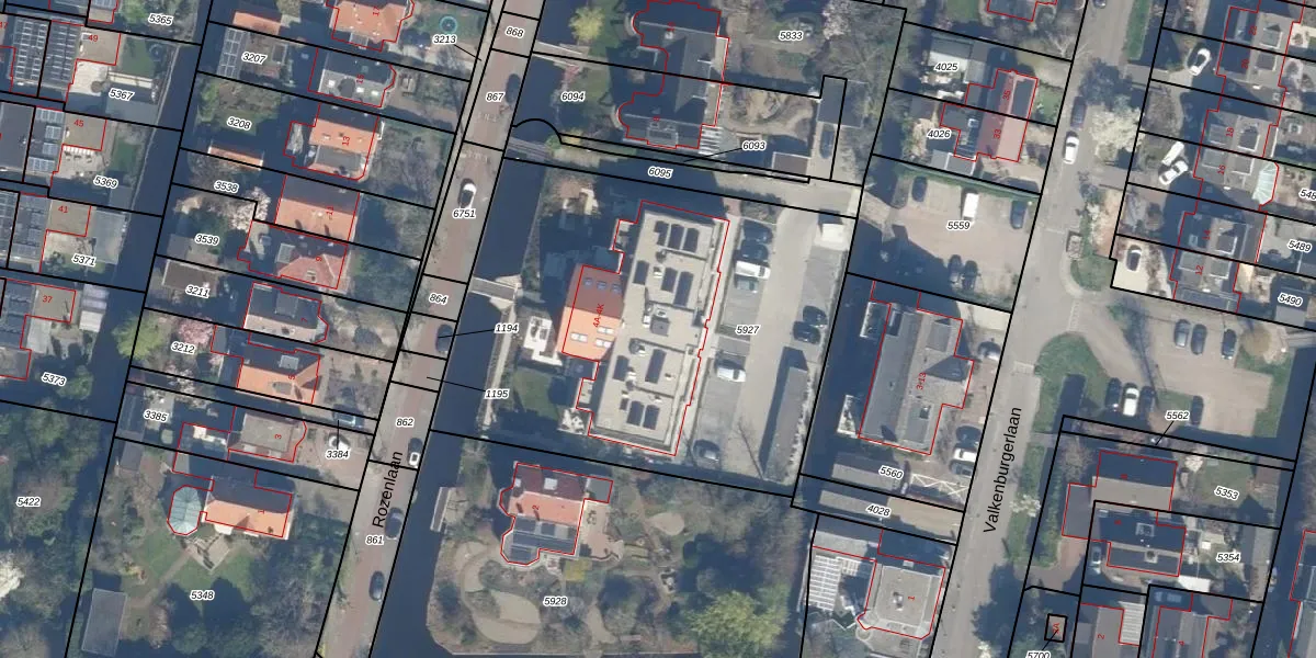 Het perceel waarop Rozenlaan 4-E staat heeft een oppervlakte van 2390 m². Dit is een zeer groot perceel. De perceeloppervlakte wordt geregistreerd door het Kadaster. Gedetailleerde informatie over de maten van dit perceel kunt u vinden in het rapport Kadastrale kaart met maatvoering van Rozenlaan 4-E.