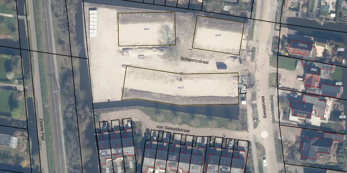 Het perceel waarop Schwartzstraat 13 staat heeft een oppervlakte van 1205 m². Dit is een zeer groot perceel. De perceeloppervlakte wordt geregistreerd door het Kadaster. Gedetailleerde informatie over de maten van dit perceel kunt u vinden in het rapport Kadastrale kaart met maatvoering van Schwartzstraat 13.