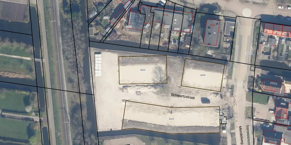 Het perceel waarop Schwartzstraat 16 staat heeft een oppervlakte van 626 m². Dit is een groot perceel. De perceeloppervlakte wordt geregistreerd door het Kadaster. Gedetailleerde informatie over de maten van dit perceel kunt u vinden in het rapport Kadastrale kaart met maatvoering van Schwartzstraat 16.