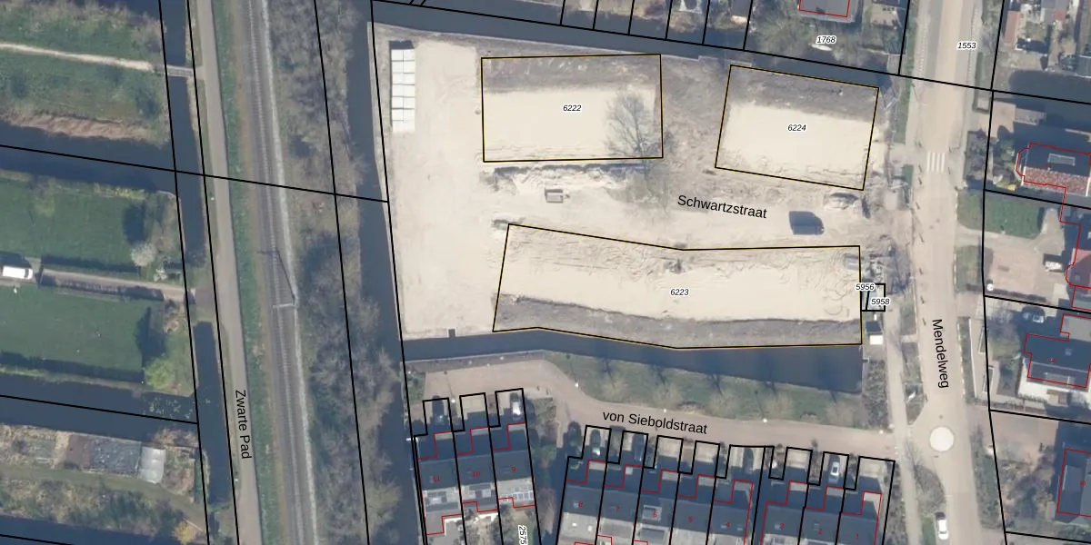 Het perceel waarop het adres ligt is BKP00-D-6223. De afkorting 'BKP00' staat voor kadastrale gemeente Boskoop. De gemiddelde perceelgrootte in Boskoop is 1883,96 m². Dit perceel is kleiner: de perceeloppervlakte bedraagt 1205 m². De grootste perceeloppervlakte in de kadastrale gemeente is 20,7 ha. De kleinste oppervlakte bedraagt 0 m². Er zijn 12 adressen aanwezig op het perceel. De laatste wijziging in het de Basisregistratie Kadaster (BRK) was op 03-03-2025.