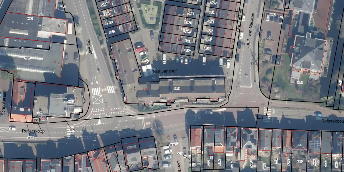 Het perceel waarop Sint Janshof 12 staat heeft een oppervlakte van 1085 m². Dit is een zeer groot perceel. De perceeloppervlakte wordt geregistreerd door het Kadaster. Gedetailleerde informatie over de maten van dit perceel kunt u vinden in het rapport Kadastrale kaart met maatvoering van Sint Janshof 12.