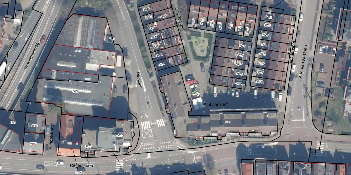 Het perceel waarop Sint Janshof 22 staat heeft een oppervlakte van 1085 m². Dit is een zeer groot perceel. De perceeloppervlakte wordt geregistreerd door het Kadaster. Gedetailleerde informatie over de maten van dit perceel kunt u vinden in het rapport Kadastrale kaart met maatvoering van Sint Janshof 22.