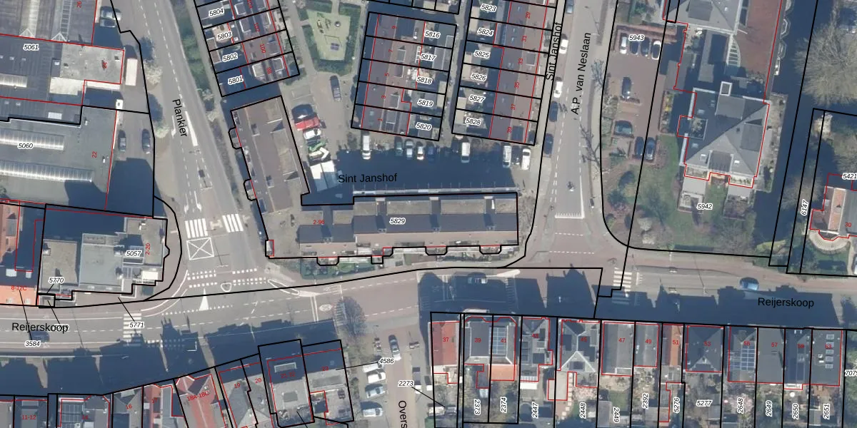Het perceel waarop Sint Janshof 8 staat heeft een oppervlakte van 1085 m². Dit is een zeer groot perceel. De perceeloppervlakte wordt geregistreerd door het Kadaster. Gedetailleerde informatie over de maten van dit perceel kunt u vinden in het rapport Kadastrale kaart met maatvoering van Sint Janshof 8.