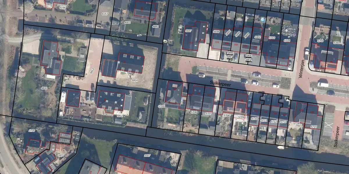 Gebruik de zoekbalk of klik op een perceel voor informatie over de adressen binnen dit perceel.