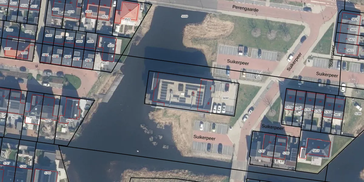 Suikerpeer 15 is gelegen op kadastraal perceel BKP00D5690. Deze kadastrale aanduiding is uniek en wordt gebruikt door het Kadaster om eigendomsrechten en andere zakelijke rechten vast te leggen. Het perceel maakt onderdeel uit van de kadastrale gemeente Boskoop.