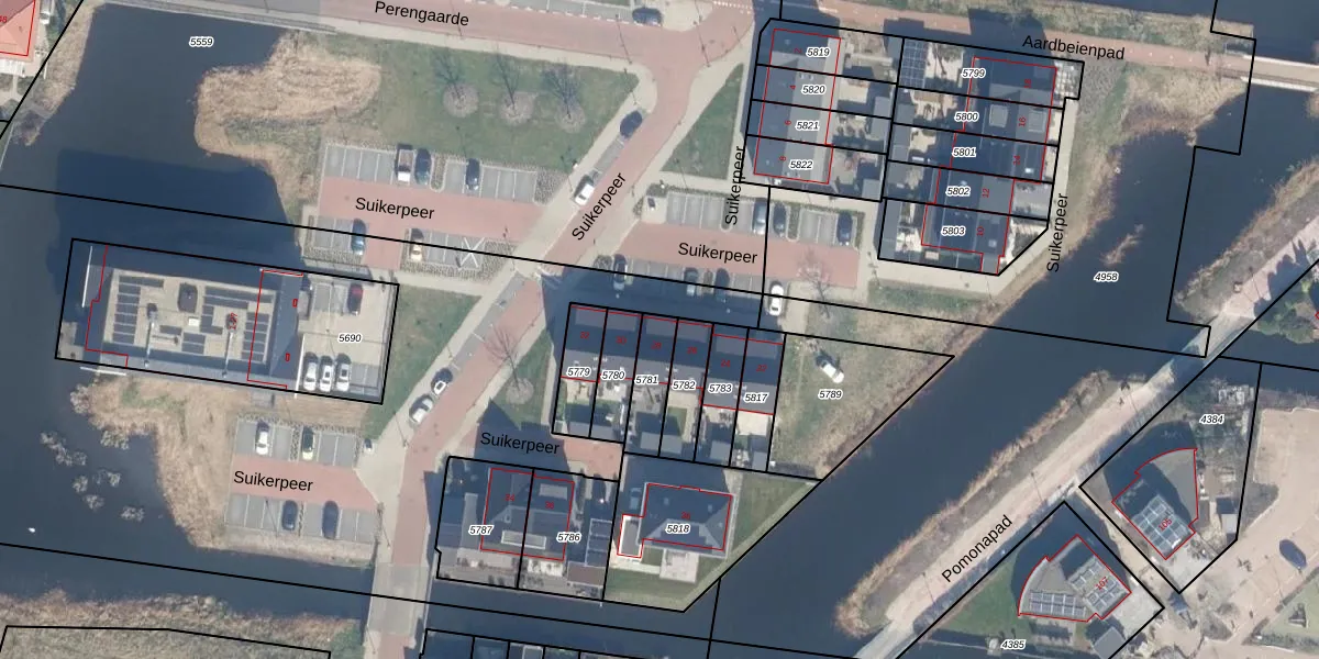 Suikerpeer 28 is gelegen op kadastraal perceel BKP00D5781. Deze kadastrale aanduiding is uniek en wordt gebruikt door het Kadaster om eigendomsrechten en andere zakelijke rechten vast te leggen. Het perceel maakt onderdeel uit van de kadastrale gemeente Boskoop.
