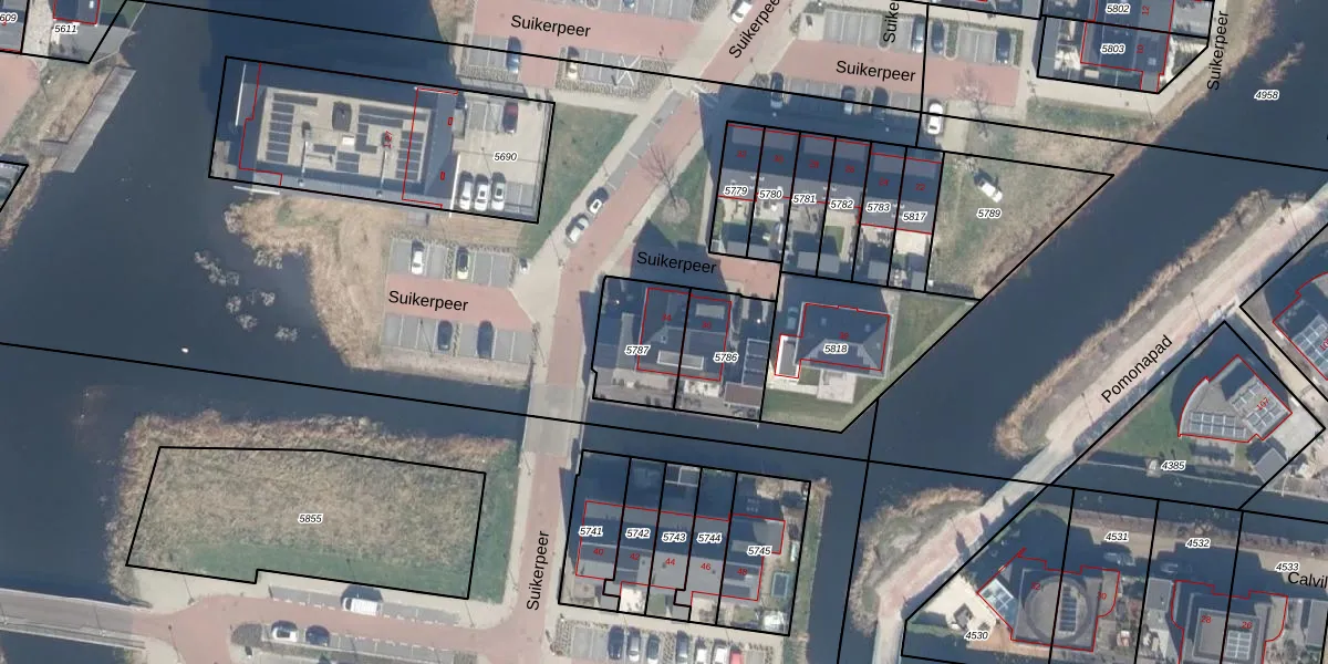 Suikerpeer 34 is gelegen op kadastraal perceel BKP00D5787. Deze kadastrale aanduiding is uniek en wordt gebruikt door het Kadaster om eigendomsrechten en andere zakelijke rechten vast te leggen. Het perceel maakt onderdeel uit van de kadastrale gemeente Boskoop.