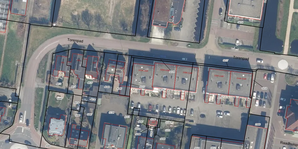 Torenpad 122-C is gelegen op kadastraal perceel BKP00A5016. Deze kadastrale aanduiding is uniek en wordt gebruikt door het Kadaster om eigendomsrechten en andere zakelijke rechten vast te leggen. Het perceel maakt onderdeel uit van de kadastrale gemeente Boskoop.