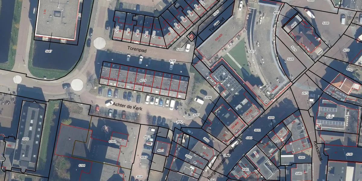 Het adres ligt op het perceel BKP00-A-4229, dat zich in de kadastrale gemeente Boskoop bevindt. De gemiddelde perceelgrootte in Boskoop is 1876,03 m². Dit perceel is kleiner: de perceeloppervlakte bedraagt 627 m². Het kleinste perceel in de kadastrale gemeente is 0 m² groot. De grootste perceeloppervlakte is 20,7 ha. Op het perceel zijn 16 adressen aanwezig. In de Basisregistratie Kadaster (BRK) werden de grenzen van het perceel geregistreerd op 15-06-2009.