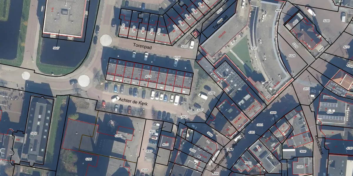 Het adres ligt op het perceel BKP00-A-4229, dat zich in de kadastrale gemeente Boskoop bevindt. Het perceel is 627 m² groot. Dat is kleiner dan de gemiddelde perceeloppervlakte in Boskoop, dat op 1876,45 m² ligt. Het grootste perceel in de kadastrale gemeente is 20,7 ha. Het kleinste perceel heeft een oppervlakte van 0 m². Er zijn 16 adressen aanwezig op het perceel. In de Basisregistratie Kadaster (BRK) werden de grenzen van het perceel geregistreerd op 15-06-2009.