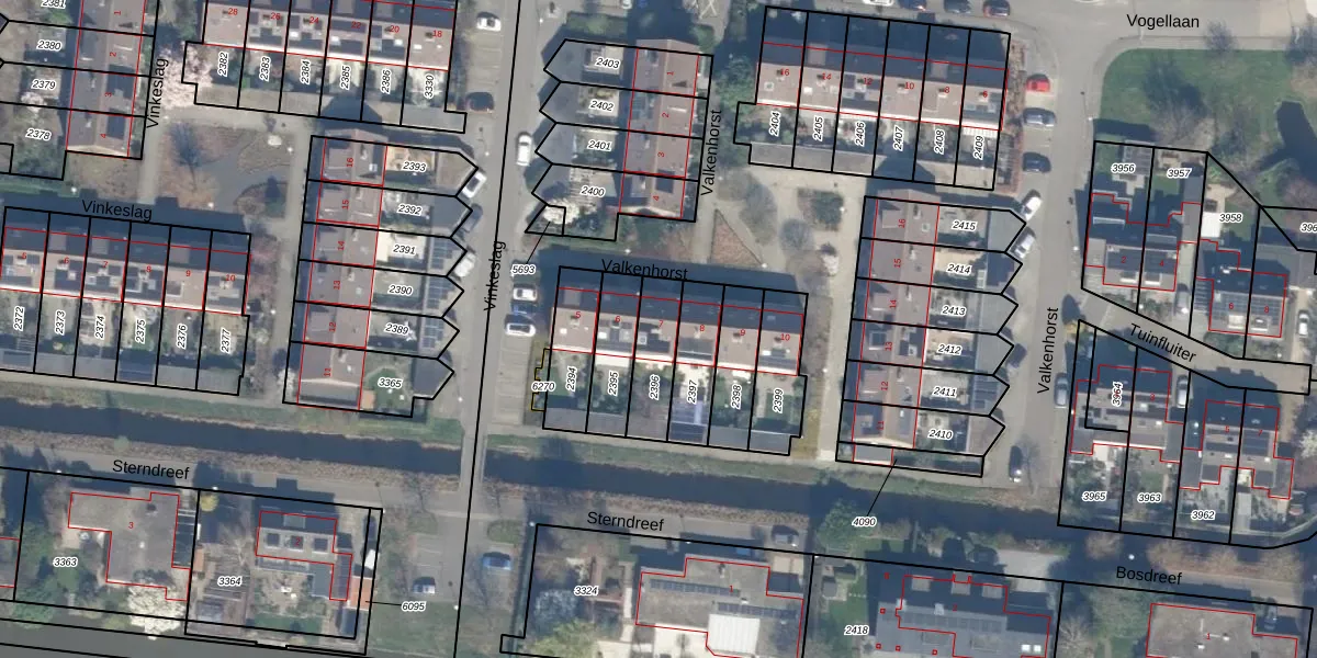 Gebruik de zoekbalk of klik op een perceel voor informatie over de adressen binnen dit perceel.