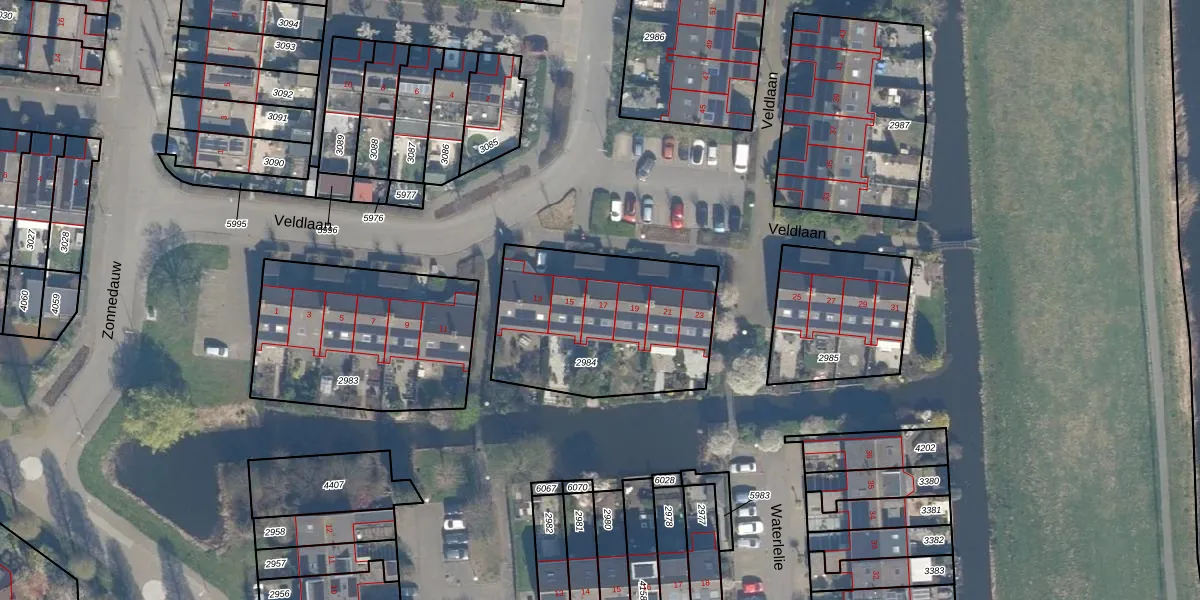 Veldlaan 17 is gelegen op kadastraal perceel BKP00D2984. Deze kadastrale aanduiding is uniek en wordt gebruikt door het Kadaster om eigendomsrechten en andere zakelijke rechten vast te leggen. Het perceel maakt onderdeel uit van de kadastrale gemeente Boskoop.