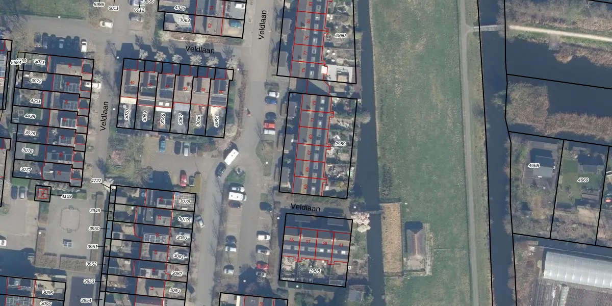 Veldlaan 67 is gelegen op kadastraal perceel BKP00D2989. Deze kadastrale aanduiding is uniek en wordt gebruikt door het Kadaster om eigendomsrechten en andere zakelijke rechten vast te leggen. Het perceel maakt onderdeel uit van de kadastrale gemeente Boskoop.
