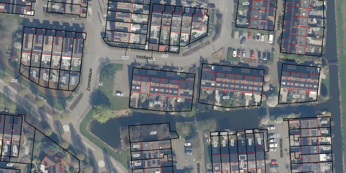 Veldlaan 9 is gelegen op kadastraal perceel BKP00D2983. Deze kadastrale aanduiding is uniek en wordt gebruikt door het Kadaster om eigendomsrechten en andere zakelijke rechten vast te leggen. Het perceel maakt onderdeel uit van de kadastrale gemeente Boskoop.