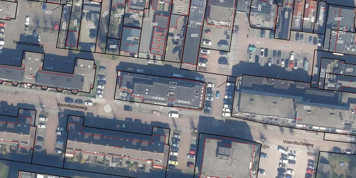 Voorofscheweg 15-S is gelegen op kadastraal perceel BKP00D3446. Deze kadastrale aanduiding is uniek en wordt gebruikt door het Kadaster om eigendomsrechten en andere zakelijke rechten vast te leggen. Het perceel maakt onderdeel uit van de kadastrale gemeente Boskoop.